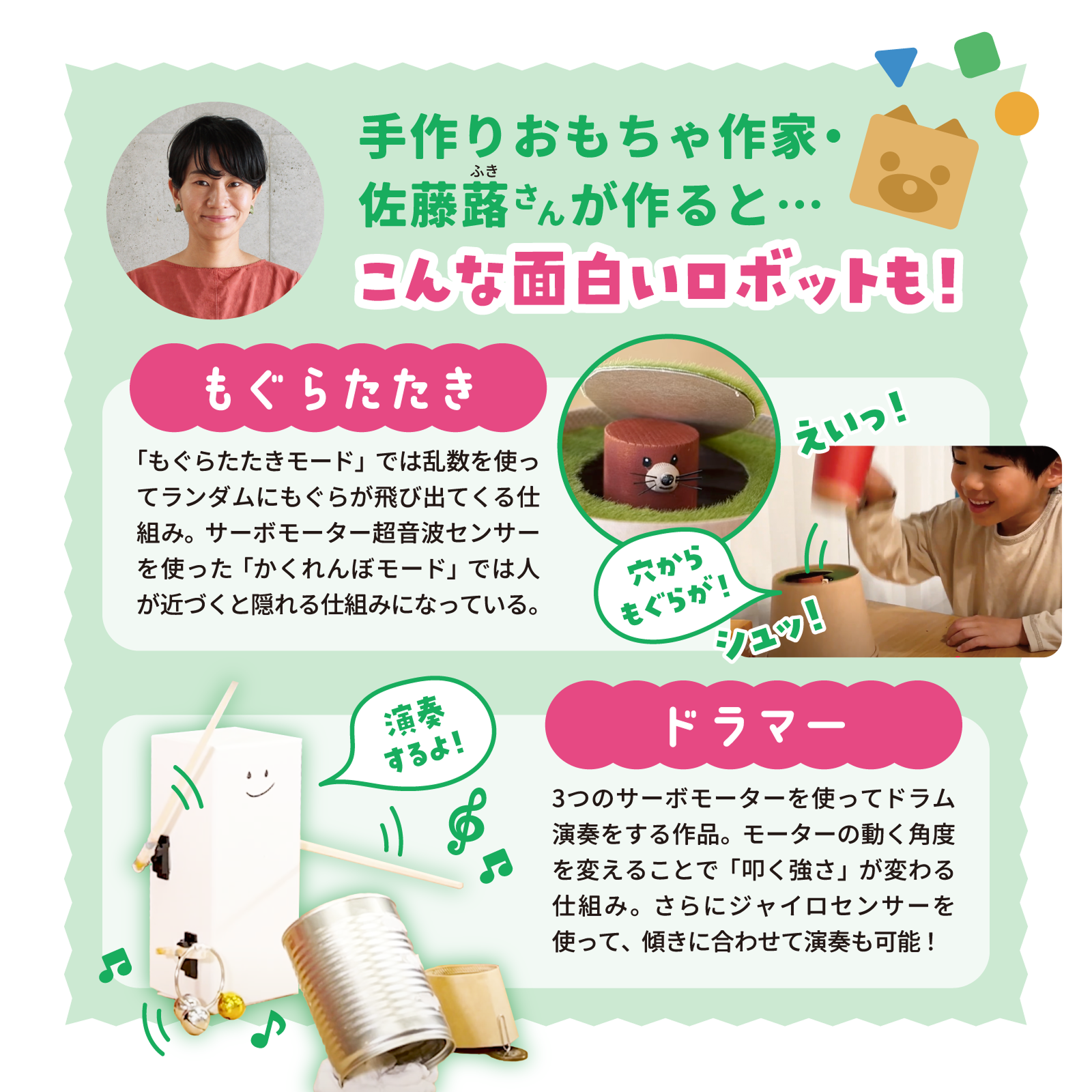 自分の工作にプログラミングで命を吹き込めます!過去に作った作品もembotで動かせちゃうかも!?