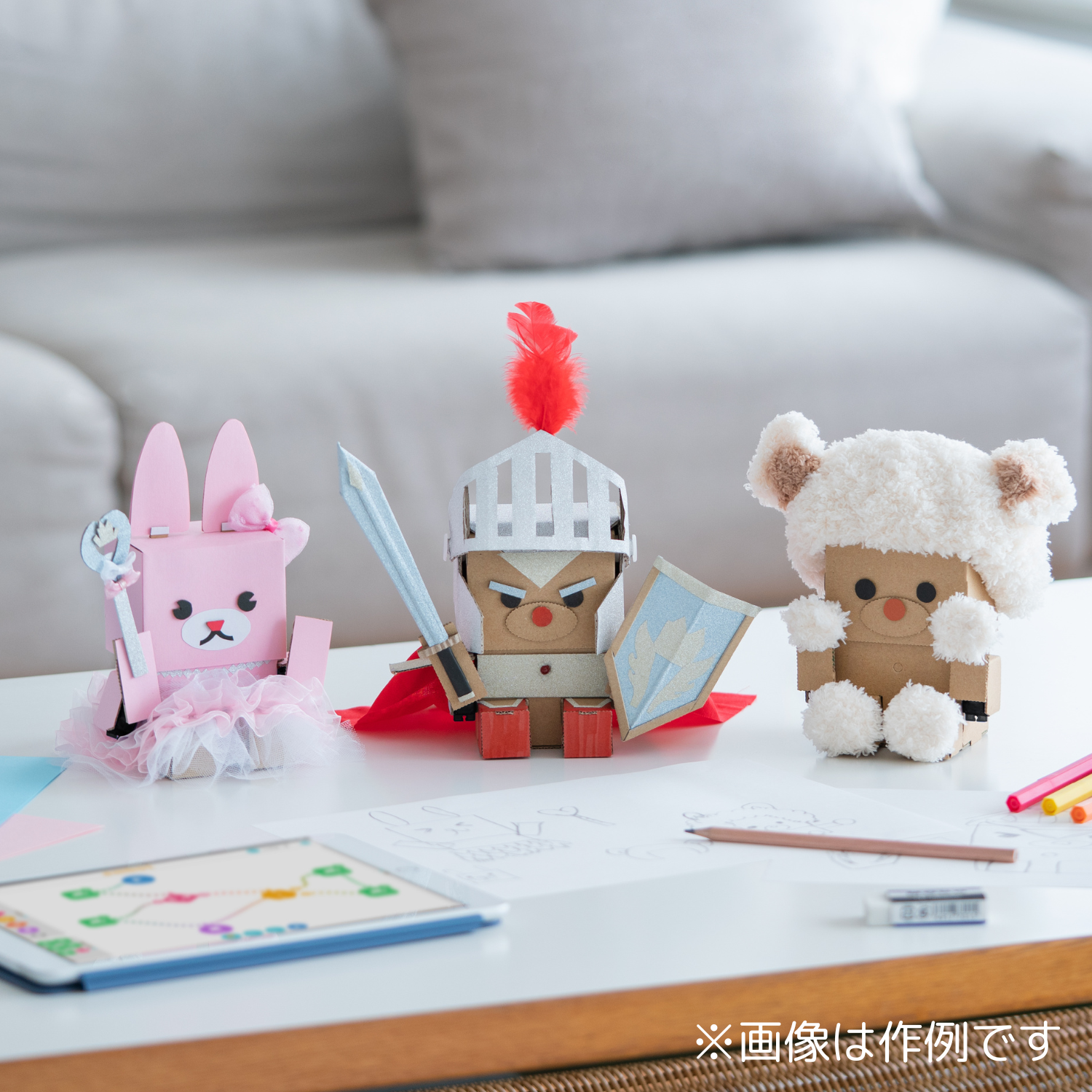 ------ ■アプリ対応OS:Android8.0以上、iOS13~18、Google Chrome OS 87以上 ■ブラウザ版対応ブラウザ:Google Chrome(android、Chrome book)、Microsoft Edge(windows)※いずれもバージョン114以上※ブラウザ版はiOSおよびMac OSではご利用いただけません。 商品名:embotスターターキット 同梱物:本体用ダンボール(3枚)/embotコア(1個)/ブザー(1個)/LEDライト(2個)/サーボモーター(2個)/モーター用パーツ(1式)/説明書(1枚) ・単4形乾電池×4本(別売)が必要です。 ・タブレット(別売)での操作を推奨。送料区分:B