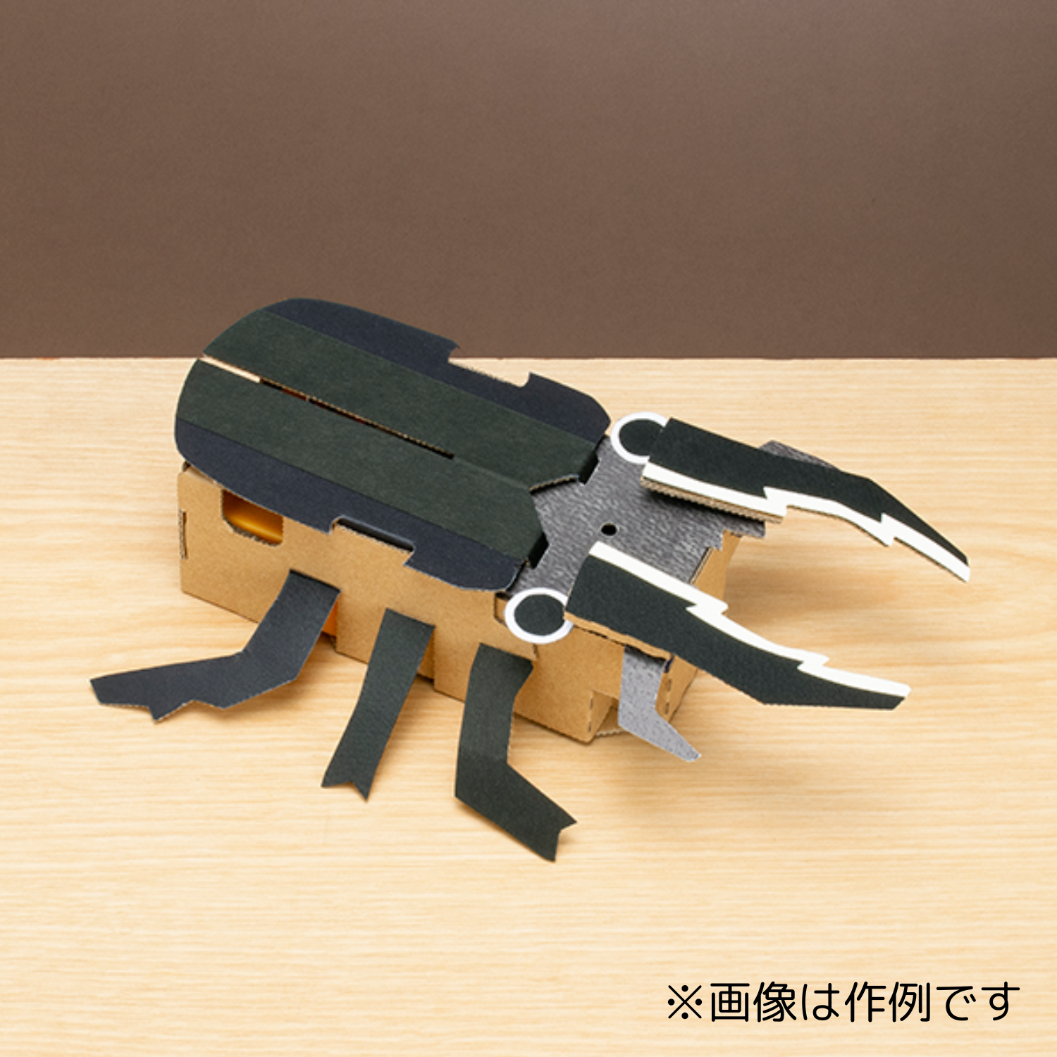 ■アゴをサーボモーターで動かすことのできる「クワガタ」を組み立てるためのダンボールと電子工作パーツとのセットです。